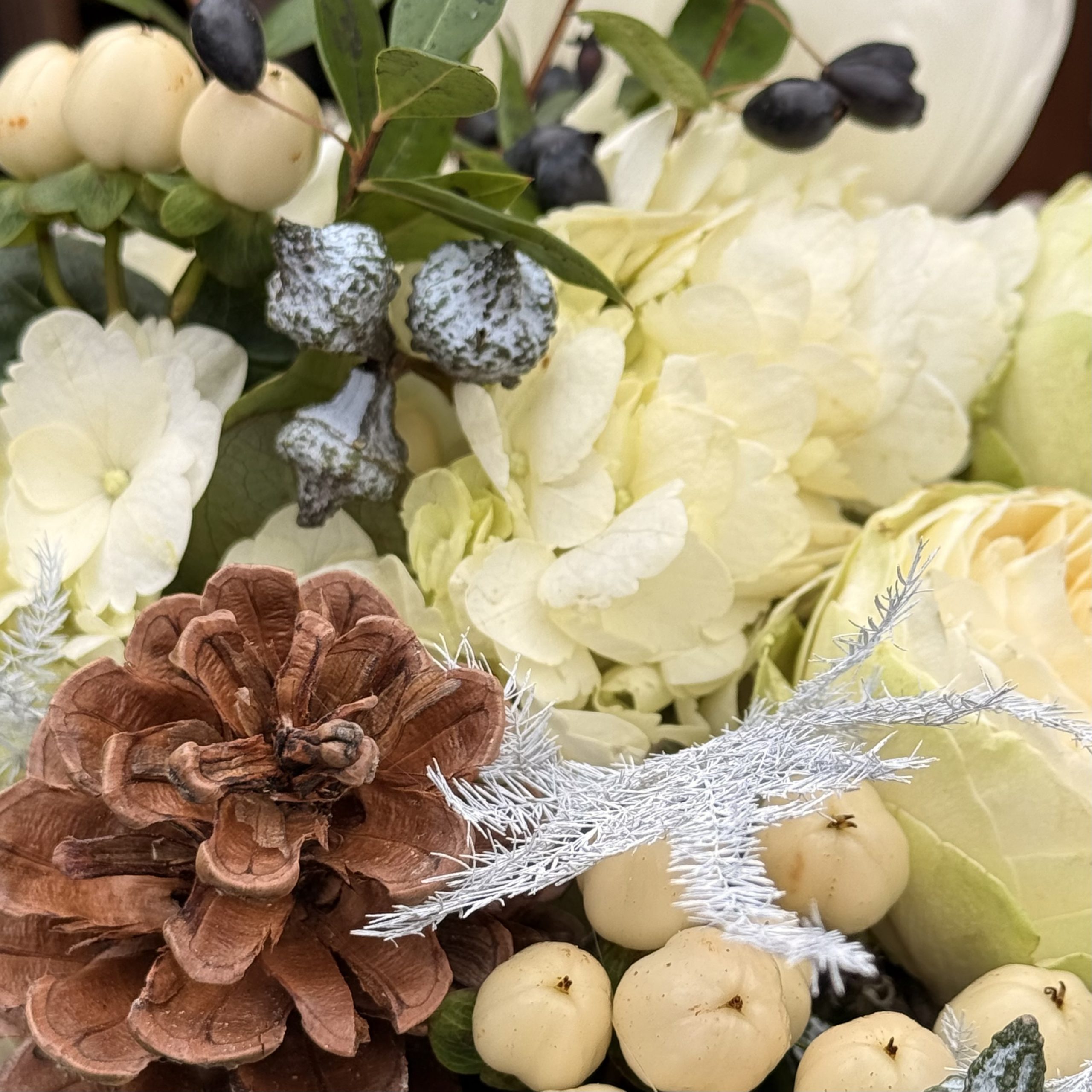 Un bouquet de fleurs à Albi, blanc glacial, tendre, nature et hivernal :