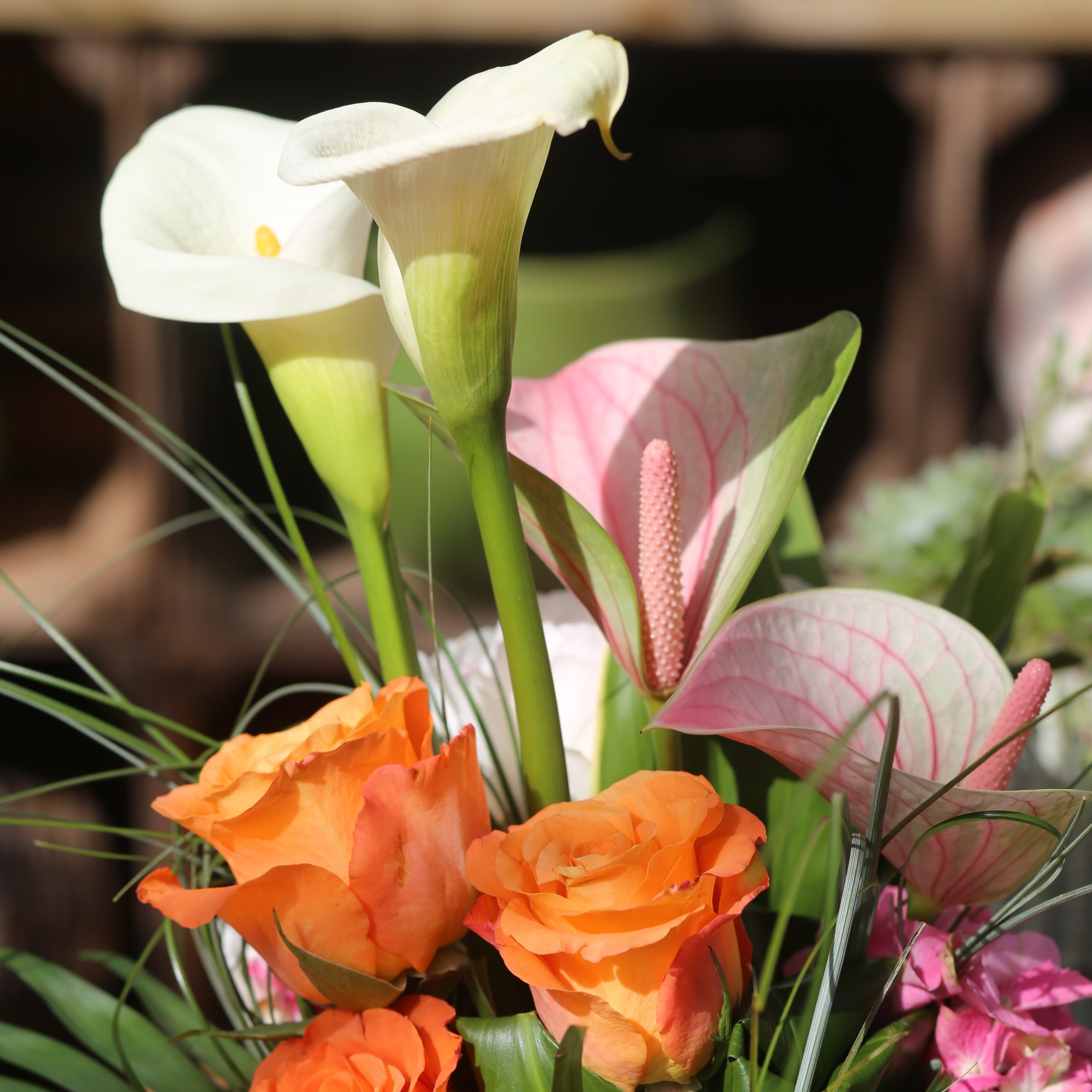 Cette création florale à Albi, aux couleurs vives, est composée de fleurs fraîches d’Albi, de saison, sélectionnées pour leur couleur, leur élégance et leur fraîcheur.
